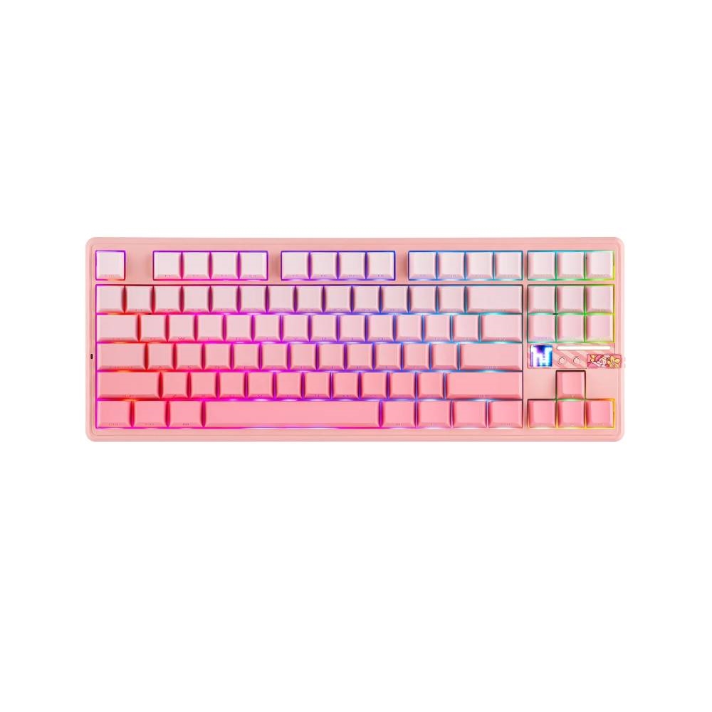 TECLADO MECANICO AULA F87 PRO V2 PINK + GRADIENT PINK WIRELESS TKL INGLES SW STRAWBERRY MINT